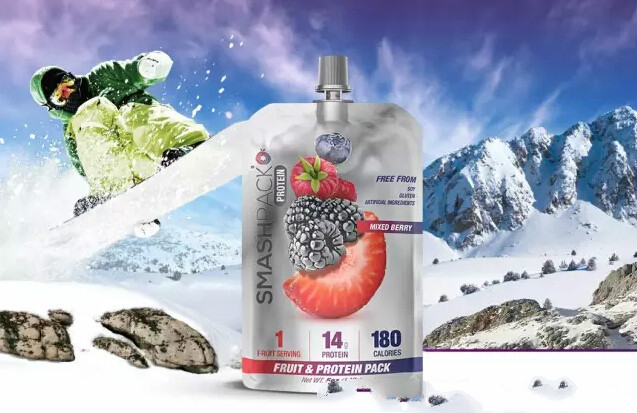 2016年8月,美國SmashPack公司也推出全新的乳清蛋白水果營養飲品。這款產品定位為全天然的高蛋白健康零食,采用便捷的142g擠壓包形式,為運動員或擁有健身習慣的消費者提供快速補充營養和能量的新方式。每袋含有每日所需的一份水果含量和14g優質乳清蛋白,水果的高抗氧化性結合高蛋白的產品特性為機體提供動力,也為健康保駕護航,更為了倡導積極的生活方式。